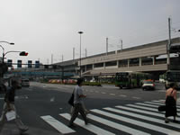 | START、大学前。大隈講堂前がサークル合宿の集合場所になっていたり、資格試験のチラシを配る人たちでごった返していた。 | 池袋駅東口のあたり。朝早かったので、まだ人足はそんなにない。 | 王子駅前。このあたりになると、初めての土地になり、だんだん楽しくなってくる。 | 前方の高架は造りかけの道路。中央環状線か?もはやどこ走っているかわからない状態。 |