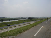 | JR武蔵野線三郷駅あたり。ほのぼの〜。 | 江戸川河川敷。日光浴、サイクリング、バーベキュー等、皆思い思いの休日をエンジョイしていた。 |