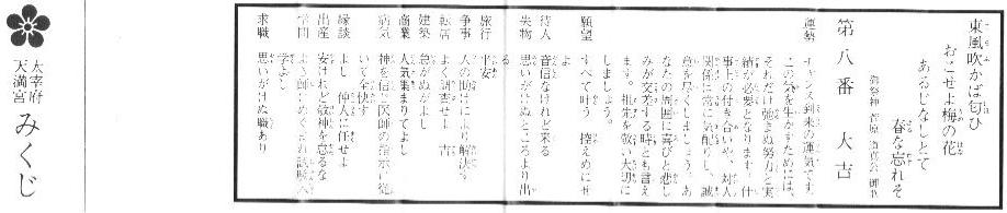 久しぶりに助手のT橋さんが訪ねてきた。「今夜飲もうYO!」と。ヨモヤソも来ることだし、逝きたかったのだが・・・\が・・・低所得者はつらいやね・・・。まあ、ついでだからということで、しばし雑談、氏が福岡に行った(学会!?)お土産におみくじを何枚か持ってきた。一枚くれるということで、一念集中し引いた結果・・・