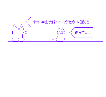 早大通りは日・祝日を歩行者天国として開放している。昨日はたまたまDEATH田がアソびに来ていたので、オープンキャンパスでごったがえすキャンパスをひととおり案内したあと、研究室からテニスボールをとってきて、早大通りでキャッチボールをした。小・中と町内のソフトボール大会でピッチャーとして活躍した漏れも、ウデが錆びに錆びきっていた。10mの距離でさえ、ぽろぽろエラーするていたらく。背面受け、リフティングも当然できなくなっていたが、それでも元来タマ遊びが好きな性分なのだろうか。30分ほどの時間を嬉々として楽しんだ。今度はバトミントンをやろう。DEATH太、よろしく!