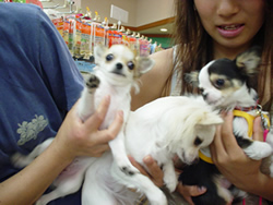 最初についたのは関東最大級!?らしいかるなばーる。「ウソつけ!」ってくらいミディアムな店内だったが、親切な店員・フリーのドッグフード・チワワを連れたお客さんの数々となかなかに楽しく過ごせた。次に向かったのはジョイフル本田、東京ドーム3.7個ぶんの敷地面積を誇るホームセンターである。うめのソファー・くぅ〜ちゃんポストカード・うめバッグ用の保冷剤を次々に購入していく。カートに乗せたうめはここでも注目の的、縁に前足をかけまわりの様子が気になって仕方がないご様子。おばちゃんや、ガキが寄ってきたり、環視に漏れは嫌気がさしてきたが、DEATH太はそうでもなかったようだ。