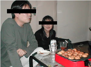 数日前、窪塚洋介が誕生日を迎えたが、それと時を同じくしてわれらがTさんも三十ウン歳のHappy Birthdayと成った。(゚∀゚)メデタイ!ってコトで記念してわが家でタコ焼きパーティーをすることになった。前回は生地が濃すぎてうまく丸まらなかったのだが、今回は逆にシャバシャバすぎてうまくひっくり返らなかった。奥が深い、こんなのデキる関西人を尊敬する。試行錯誤を繰り返し、3ターンでようやくまともなタコ焼きが焼ける。具もコーン、ホタテ、牛角切り等バラエティーを考えた。3人の共同作業、互いの連帯感がより深まったことは間違いないようだ。Tさんのますますのご発展を願わずにはいられない。実りある33歳になりますやうに。