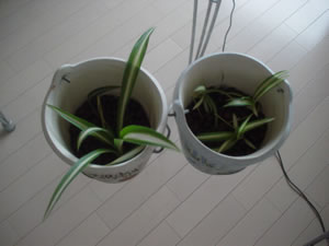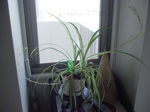 | 観葉植物(オリヅルラン)のランナーがにょきにょき出てきたので(この画像は4月時点。今はもっとスゴい。)↓ |
