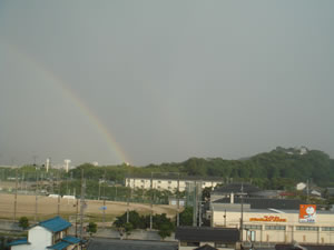 しかしながら、雷はステキな贈り物をしてくれた。虹だ。彦根城山(金亀山)ふもとから彦根市と米原市の境界あたりまで、半円のくっきりとした虹を拝めることができた。キレー