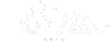 ('(゚ω゚`∩ ヽヽ_) (_ノ ノ ∩´゚ω゚)')