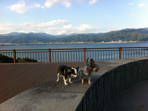 風でいろんな細かいものが飛んできて目をやられないかと心配したが、昨日からの強風であらかた㌧でいってしまったのと、雨で地面が濡れているために大丈夫だった。彦根に来てから毎日散歩していただけに2日続けての散歩の延期は耐えられなかったのだろう。うめちよとも実に楽しそうに散歩を満喫していた。