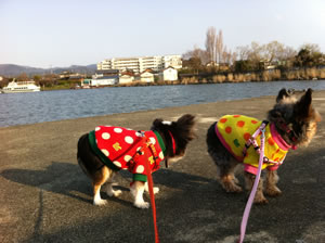 日曜日。朝一で近所の動物病院へうめちよを連れて行く。目的はフィラリアのお薬とフロントライン(プラス)をもらうためだ。スグにくれるかと思いきや、簡単な診察までしてくれた(モチロン¥はかかった)。ちよは500gマイナスの1.95`c。うめは、忘れた…2匹とも標準体重で健康だとお墨付きをもらった。ただし、歯垢がちょっとたまっているらしい。漏れのハミガキシートでのハミガキテクは全くダメだということが示されたトホホ。