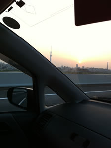 帰りは残念ながら渋滞に巻き込まれたのだが、そのぶん中央環状線上から見るスカイツリーと夕日のコントラストは見事だった。