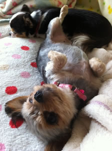 昨日断念したうめ&ちよの狂犬病予防注射を、今日こそヤる!本間医院開店5分前に行き、1番乗りを期す。幸い雨模様で客足は悪いようだ。開店と同時に入ったのは漏れらだけだった。よって、待ち時間ナシですぐ診察してくれた。うめ&ちよとも健康と診断してくれたが、体重は若干落ちたようだ。昨年9月に彦根に来てから、毎日キッチリこなすお散歩と適切な食事量の賜物と考えたい。背中のあたりに注射をブスっとやられたが、2人ともキャンともスンともいわなかった。痛くなかったの???