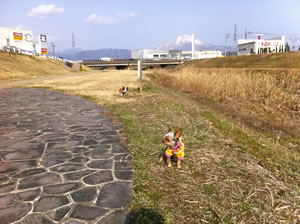 お散歩も兼ねたからうめちよも同伴だ。最初に本を買っておくことにした。とりあえず、最も家から近い宮脇書店に入ったのだが、品揃えが貧層。置いていないことが判明した。次は、当初の予定通り、長浜のサンミュージックに向かった。ここいらじゃ大規模書店なのだが、なかった。ムムム・・・そんな人気がないのか、アレは。