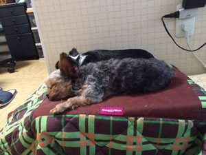 そうして時間通りにうめちよを迎えに行く。前回、うめは切りすぎてハゲチョロケになってしまったので、ちょっと長めに。ちよはこの寒空に最も短い3oサマーカットだ。これで、年を越せる(漏れはいつ散髪に行こうかしら?)。
