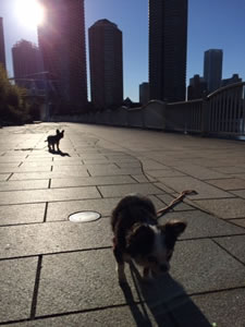 朝のガソリンスタンドへはちよを連れて行った。その帰り に隅田川沿いを散歩させる。コートを羽織らなくても良いような暖かい朝だった。
