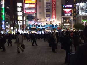 仕事を追えいったん帰宅。チャリで待ち合わせ場所の新橋駅前に向かう。金曜の夜ということもあり、駅前広場は大勢の会社員でごった返していた。ビルのベランダから有名人?が何かのイベントをしている。駅前名物のSLはイルミネーションで飾られ、大音量のX'masソングが流れている。いやはや、すごい所だ。街角インタビューもやっているかなと探したが、それはいなかった。