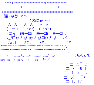 / ̄ ̄ヽ(,,゚∀゚) ~ ̄ヽ