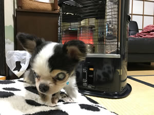 ストーブ前でぬくぬくのうめ