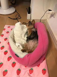 前回は駐車代が\1,600もかかったので、今回は自宅からペットカートを引いて向かった。9:30開店とあった(HP)のだが10:00に変更されていた。10分ほどクリニックの前で待ちぼうけ。気の利いたスタッフが少し早めに入れてくれた。