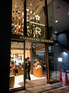 夜。です太が銀座にできた高級スタバSTARBUCKS RESERVE BARの予約をとったので、行くことに。銀座の中心GINZA SIXの裏通りにあるだけに、車だと大変なのではと危惧したが、21時を過ぎるとさほどでもなかった。時間外でタダになった路駐帯に停め、いざ店内へ。混んではいたがすぐに予約席に案内してくれた。なんだかよくわからない、いろんな種類のコーヒーを楽しめるようだ。が、漏れは最も安いであろう400円台をオーダー。それでもスゴくコーヒーの風味が際立つ一杯だった。