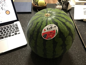 今年初めてのスイカはまるまる一玉だ。銀行ATMの帰りに何気なしに立ち寄ったスーパーで、故郷金沢スイカが売られていた。ふるさと納税というワケではないが、ささやかな貢献をしようとカットスイカではなく一玉を買うことにした。まだ冷えていないので冷蔵庫に入れて、食べ頃は明日になるだろう。楽しみだ。