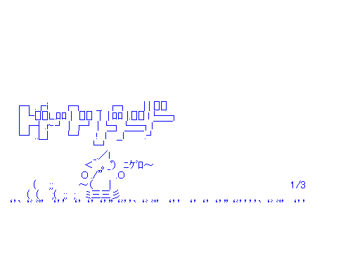 )|;;;;;;;;(,,゚Д゚) (⌒)(⌒) /.:::::::::(,,゚Д゚) | (ノ |) | (ノ |) ⊂三つ: つ ババンバ