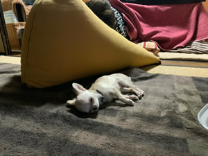 リビングではテーブルに座ると足元でたまこがじゃれついてくる。カワイイ同時に元気が有り余っているのなら外に出してみるかという気にさせる。