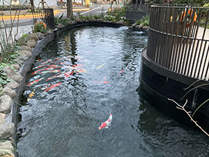 TOKYO_TORCH_PARKの錦鯉が泳ぐ池