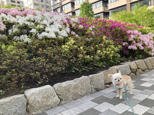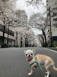 並木道は観光地というわけではないが、知る人ぞ知るという感じでそこそこの人出があり、皆カメラで絶景を収めていた。そんな中をたまこと歩いたので、道行く人にかわいい~と呼び止められたり、触らせたりと。そんな一人に近所の有名な焼き鳥屋さんの奥さんがいた。彼女も昔チワワを飼っていたことがあり、今はボストンテリアだという。今度はそのテリアちゃんにお散歩で会いたいものだ。