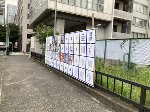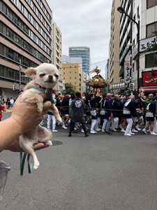 早朝の散歩で近所の公園を通ると、山王祭の小屋が建てられていて警備員が立っていた。一晩中見張っていたのだろうか。ご苦労なことだ。人懐っこいたまこが進んで触られに行った。警備員もまんざらではない様子でたまこを撫でてくれた。いよいよ山王祭本番なのだろう。