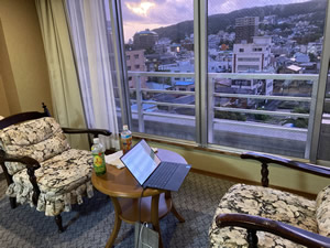 幸い、動けないというほどではなく、ビッコをひくのが分かるくらいだ。今日からのイベントに支障はない・・・と思いたい。宿をチェックアウトし、車で5分ほどの別の宿であるラヴィエ川良に到着する。イベント開始の2時間前だし、だれも来ていない。だけど会場には入れてもらえたので、一人設営を始める。テーブルレイアウト変更、映像機器接続、配布資料用意。30分前には準備万端だ。そろそろ誰か来るのでは・・・。