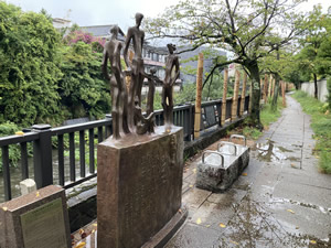 3時間ほどで無事1日目の宿に到着。事前の下調べ通り、古臭いが想定内の建物だ。素泊まり朝食付きで7千円台なので納得だ。荷物を下ろし、一息ついたのち、夕食の買い出しを兼ねて、小雨の中、伊東の市内散策をする。伊東大川沿いに雰囲気のある松川遊歩道なる小径があったのでそこを通る。川のせせらぎが気持ちいいい。彦根の芹川を思いだした。竹が立て掛けられていて、中に明かりが灯されている。今は夕方だが、夜になるとライトアップされさぞかしきれいなのだろう。