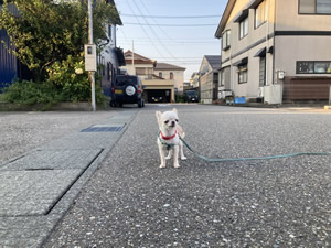 金沢での起床は寝床が違うせいかチト遅い。目が覚めると外はすでに明るい6時過ぎだ。昨日はたまこのお散歩ができなかったので、最終日の今日はやっておこう。日陰を選びながら近所を一回りした。アツい。