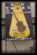 定演間近になると、1年生の作った立て看板をメインストリートに飾るのが通例なのだが、今年 は学館の壁に飾ってあった。これと同時作成で吊り看(右)も作成し、ステージに華を添える。