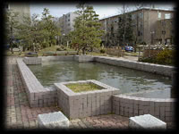 大学祭前夜祭のメインスポット。富大名物「寒中水泳」と並ぶ、「池落とし」が催される。当時は池の周りが土だったので「コロモ」をつけることができたのだが、最近は整備されてブロックが敷き詰められている。見た目はビューテホーだが、ちょっと寂しい。