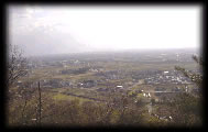 城山の中腹の休憩所から見た、呉羽および小杉の町の風景。天気がよいとその先に日本海が見える。超天気がよいと、コンちゃんの地元、下村も見えることだろう。