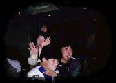 駅前通りに面している、なかなか雰囲気のいいトコ。カクテ ル系が結構おいしかった記憶あり。ちなみに写真の3人は通 りすがりの通行人!?